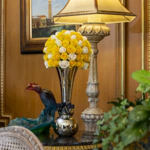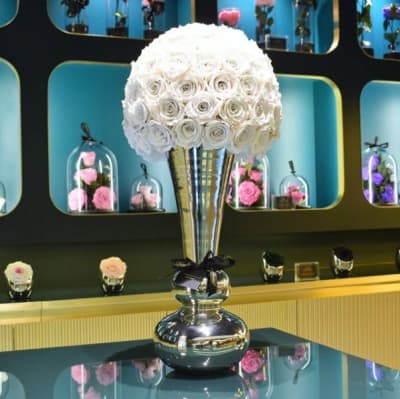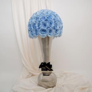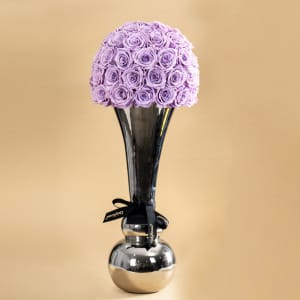 This exquisite design is a real show-stopper, offering a healthy dose of opulence with the stunning colours of our Infinite Roses®, arranged in a large silver vase made of stainless steel. The ultimate gift.